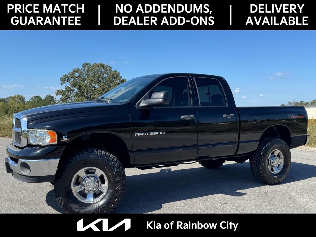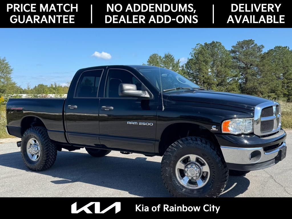 2004 Dodge Ram 2500 SLT 4WD â" 6.7L Cummins Turbo Diesel performance in a rugged, reliable package. This well-maintained crew cab offers proven towing capability, heavy-duty suspension, and the durability Dodge Ram is known for, now available in Rainbow City, AL. Whether you need a dependable work truck or a weekend hauler, the 2500 SLT combines comfort and capability with a powerful 6-cylinder, 5.9L diesel engine that delivers strong low-end torque and long-term reliability. Key features include four-wheel drive for confident handling in varied conditions, a CARFAX Clean Report verifying a clear history, and integrated Satellite Radio for entertainment on long trips. The SLT trim adds premium convenience with comfortable seating, upgraded interior trim, and user-friendly controls built for daily use. This Dodge Ram is competitively priced to offer the best value in the area â" you won't find a better deal for a diesel 2500 SLT with this condition and feature set. Located in Rainbow City, AL, the truck is ready for immediate test drives and inspections. Ideal for contractors, truck enthusiasts, or anyone needing serious towing and payload capacity, this 2004 Ram 2500 combines rugged capability with verified history and strong resale potential. Contact us to schedule a viewing and secure the best-priced 2500 SLT on the lot.