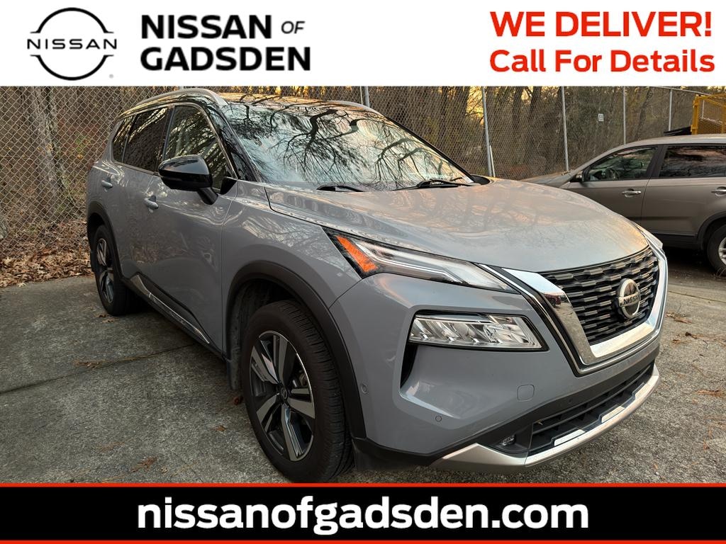 Discover premium comfort and advanced technology with this 2021 Nissan Rogue Platinum, located in Gadsden, AL. This stylish crossover features a fuel-efficient 4-cylinder 2.5L gasoline engine paired with front-wheel drive, delivering a smooth, composed ride with excellent everyday usability. The Platinum trim elevates the cabin with luxurious leather seats, providing both heated and ventilated comfort for driver and passengers on every trip. Stay connected and entertained with seamless Apple CarPlay integration, allowing hands-free access to navigation, music, and messages. Enjoy superior audio quality from the BOSE stereo system and broad content selection via XM Radio. Built-in navigation guides you confidently on long drives and unfamiliar routes. Practical amenities and premium touches throughout the interior create a refined driving environment. This Nissan Rogue Platinum combines safety, convenience, and efficiency in a compact SUV package ideal for families, commuters, and weekend adventurers. The vehicle is competitively priced and offered at the best price in the area, providing exceptional value for buyers in Gadsden, AL and surrounding communities. Don't miss an opportunity to own a well-equipped, reliable crossover with sought-after features like leather seating, Apple CarPlay, BOSE sound, XM Radio, and navigation. Contact us today to schedule a test drive and experience this 2021 Nissan Rogue Platinum firsthand.
