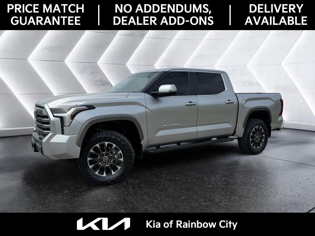 2024 Toyota Tundra Limited â" 4WD, V6 3.5L (3445 cc) â" 30,813 miles. Located in Rainbow City, AL, this Toyota Tundra Limited pairs rugged capability with refined comfort, and it's priced to move â" the best price in the area. Powerful and efficient, the 3.5L V6 delivers confident towing and smooth highway performance while the 4WD system tackles mud, gravel, and snow with ease. The lifted suspension provides extra ground clearance and a commanding view of the road. Premium leather seats keep driver and passengers comfortable on long trips, and advanced safety features like Blind Spot Monitor and Rear Parking Sensors add confidence in daily driving and crowded lots. This Toyota Tundra comes with a CARFAX Clean Report for peace of mind, showing a well-documented history and carefully maintained service records. The Limited trim includes upscale touches and convenience features that make this truck feel like a luxury SUV with pickup capability. Whether you need a dependable work truck, a weekend adventurer, or a comfortable family hauler, this 2024 Toyota Tundra Limited delivers. Visit Rainbow City, AL to see it in person â" with the best price around, it won't last long. Contact us to schedule a test drive today.